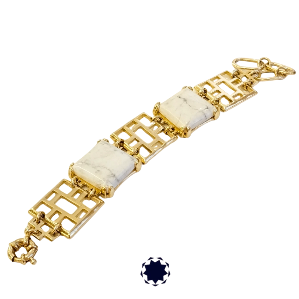 Adicione um toque de LUXO ao seu visual com a nossa deslumbrante Pulseira Metal Dourado 18K Quadrada Howlita Branca. Este acessório é a escolha perfeita para mulheres de bom gosto que desejam enriquecer seu look de maneira versátil e sofisticada.